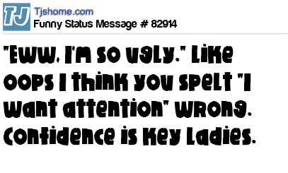 X says "Eww, I'm so ugly." Like oops I think you spelt "I want attention" wrong. Confidence is key ladies.
