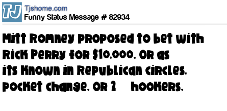 X Mitt Romney proposed to bet with Rick Perry for $10,000. Or as its known in Republican circles, pocket change. Or 2 ½ hookers.