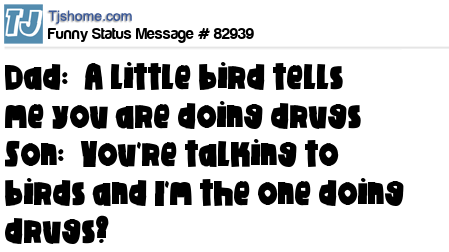 X says Dad: “A little bird tells me you are doing drugs” Son: “You're talking to birds and I'm the one doing drugs?”