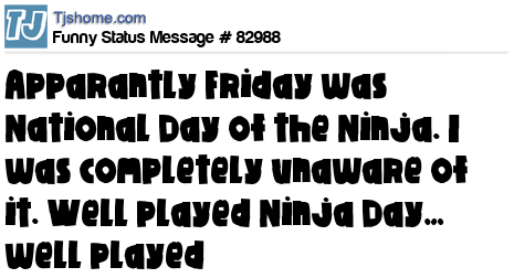 X is Apparantly Friday was National Day of the Ninja. I was completely unaware of it. Well played Ninja Day… well played