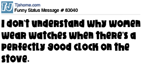 X says I don't understand why women wear watches when there's a perfectly good clock on the stove.