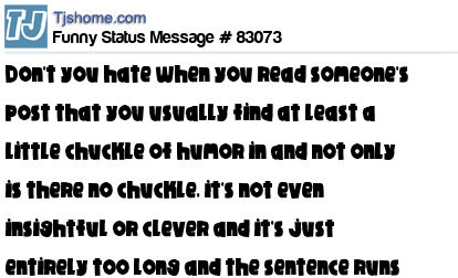 X is Don't you hate when you read someone's post that you usually find at least a little chuckle of humor in and not only is there no chuckle, it's not even insightful or clever and it's just entirely too long and the sentence runs on and on yet for some reaso