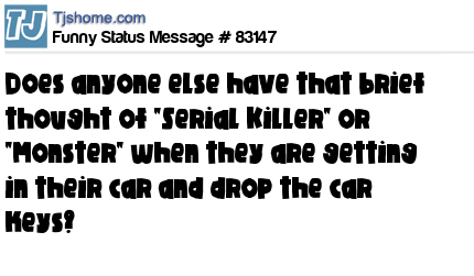- # 83394 Ever think "Serial Killers Coming" when you're getting into your car and you drop your car keys?