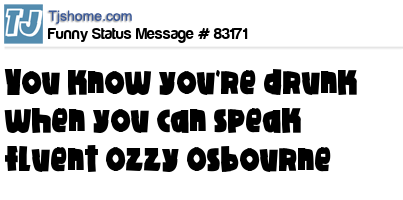 - # 102718 I'm so drunk I speak fluent Ozzy Osbourne.