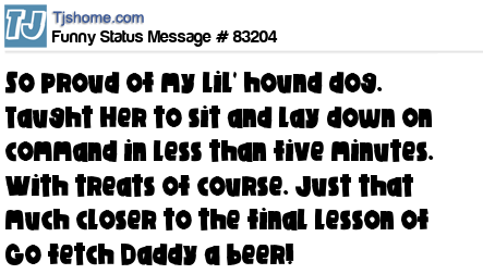X So proud of my lil' hound dog. Taught Her to sit and lay down on command in less than five minutes. With treats of course. Just that much closer to the final lesson of Go fetch Daddy a beer!