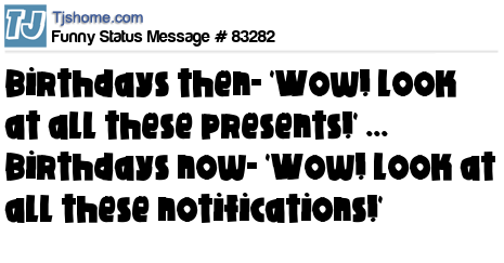 - # 91889 Birthdays back then: Wow! Look at all these presents!. Birthdays now : Wow damn look at all these notifications!.