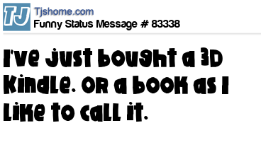 X is I've just bought a 3D Kindle. Or a book as I like to call it.