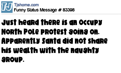 X is Just heard there is an Occupy North Pole protest going on. Apparently Santa did not share his wealth with the naughty group.