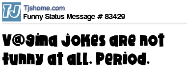 - # 78869 Period jokes are not funny. I'm BLOODY serious.