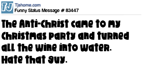 X The Anti-Christ came to my Christmas party and turned all the wine into water. Hate that guy.