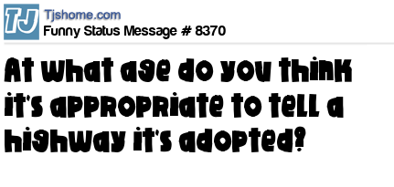 - # 179844 Wish me luck. I'm about to tell this highway it's adopted.