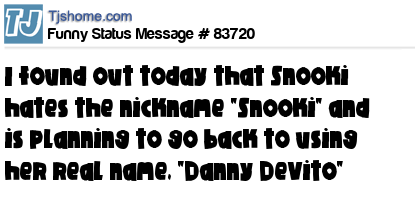 X is I found out today that Snooki hates the nickname "Snooki" and is planning to go back to using her real name, "Danny DeVito"