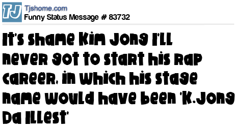 X is It's shame Kim Jong I'll never got to start his rap career, in which his stage name would have been 'K.Jong Da Illest'