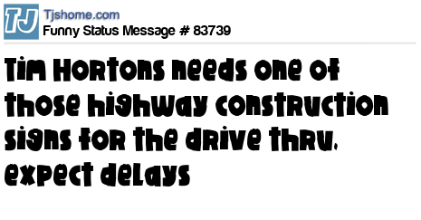 X is Tim Hortons needs one of those highway construction signs for the drive thru, expect delays