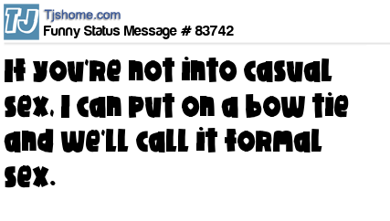 X says If you're not into casual sex, I can put on a bow tie and we'll call it formal sex.