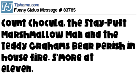 X Count Chocula, the Stay-Puft Marshmallow Man and the Teddy Grahams Bear perish in house fire. S'more at eleven.