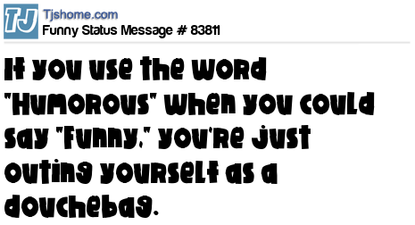 X says If you use the word "Humorous" when you could say "Funny," you're just outing yourself as a douchebag.