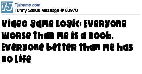 X  video game logic: Everyone worse than me is a noob. Everyone better than me has no life