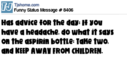 - # 37798 Advice for the day: If you have a headache, do what it says on the aspirin bottle: Take two, and KEEP AWAY FROM CHILDREN.