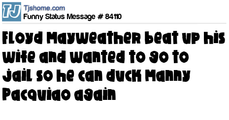 X is Floyd Mayweather beat up his wife and wanted to go to jail so he can duck Manny Pacquiao again