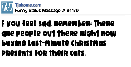 X says f you feel sad, remember: There are people out there right now buying last-minute Christmas presents for their cats.