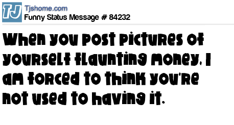 X says When you post pictures of yourself flaunting money, I am forced to think you're not used to having it.