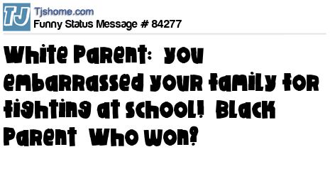 X is White Parent: “you embarrassed your family for fighting at school!” Black Parent “Who won?”
