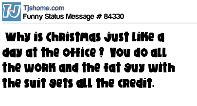 - # 84284 Why is Christmas just like a day at the office ? You do all the work and the fat guy with the suit gets all the credit.