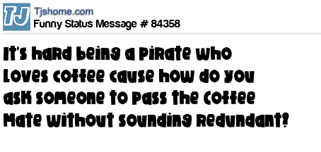 X It's hard being a pirate who loves coffee cause how do you ask someone to pass the Coffee Mate without sounding redundant?