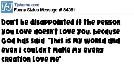 X Don't be disappointed if the person you love doesn't love you, because God has said "This is my world and even I couldn't make my every creation love me"