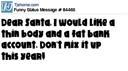- # 40756 Dear Santa, My wish 4 this year is a big, fat bank account & a slim body. Pls don't mix these 2 up like you did last year!!!!!