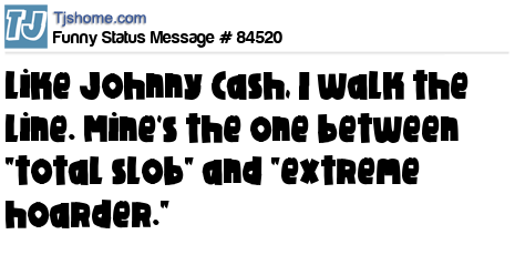 X Like Johnny Cash, I walk the line. Mine's the one between "total slob" and "extreme hoarder."