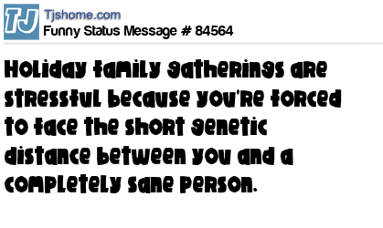 - # 84539 Holiday family gatherings are stressful because you're forced to face the short genetic distance between you and a completely insane person.