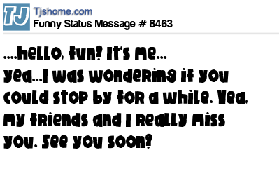 X ....hello, fun? It's me... yea...I was wondering if you could stop by for a while. Yea, my friends and I really miss you. See you soon?