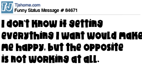 X I don't know if getting everything I want would make me happy, but the opposite is not working at all.