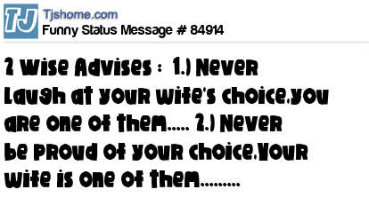 X is 2 Wise Advises : 1.) Never laugh at your wife's choice,you are one of them..... 2.) Never be proud of your choice,Your wife is one of them.........