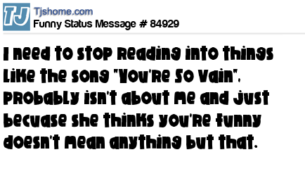X is I need to stop reading into things like the song "You're So Vain", probably isn't about me and just becuase she thinks you're funny doesn't mean anything but that.