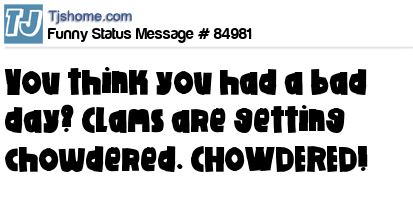- # 199435 You think your having a bad day? Clams are getting chowdered. CHOWDERED.