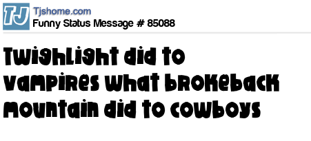 - # 80873 Twilight did to vampires what Brokeback Mountain did to cowboys.