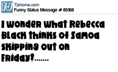 X  I wonder what Rebecca Black thinks of Samoa skipping out on Friday?.......