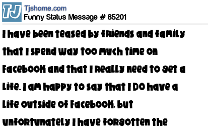 X I have been teased by friends and family that I spend way too much time on Facebook and that I really need to get a life. I am happy to say that I DO have a life outside of Facebook, but unfortunately I have forgotten the password for it.