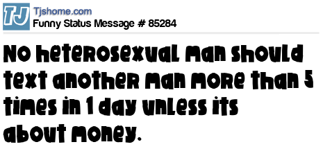 X says No heterosexual man should text another man more than 5 times in 1 day unless its about money.