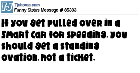 X is If you get pulled over in a Smart Car for speeding, you should get a standing ovation, not a ticket.