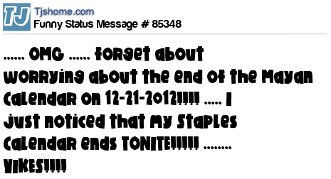 - # 5814 The Mayan calendar says the world is going to end in 2012. That's why I refer to my Ziggy calendar instead.