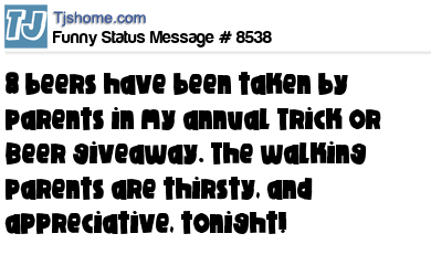 X says 8 beers have been taken by parents in my annual Trick or Beer giveaway. The walking parents are thirsty, and appreciative, tonight!