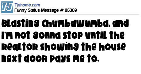 X Blasting Chumbawumba, and I'm not gonna stop until the realtor showing the house next door pays me to.