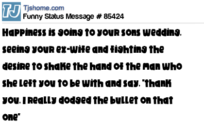 X says Happiness is going to your sons wedding, seeing your ex-wife and fighting the desire to shake the hand of the man who she left you to be with and say, "thank you, I really dodged the bullet on that one"