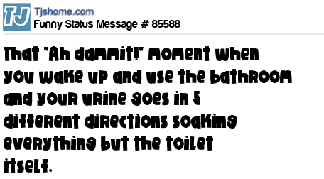 X That "Ah dammit!" moment when you wake up and use the bathroom and your urine goes in 5 different directions soaking everything but the toilet itself.