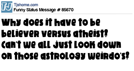X Why does it have to be believer versus atheist? Can't we all just look down on those astrology weirdo's?