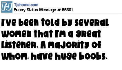 X says I've been told by several women that I'm a great listener. A majority of whom, have huge boobs.